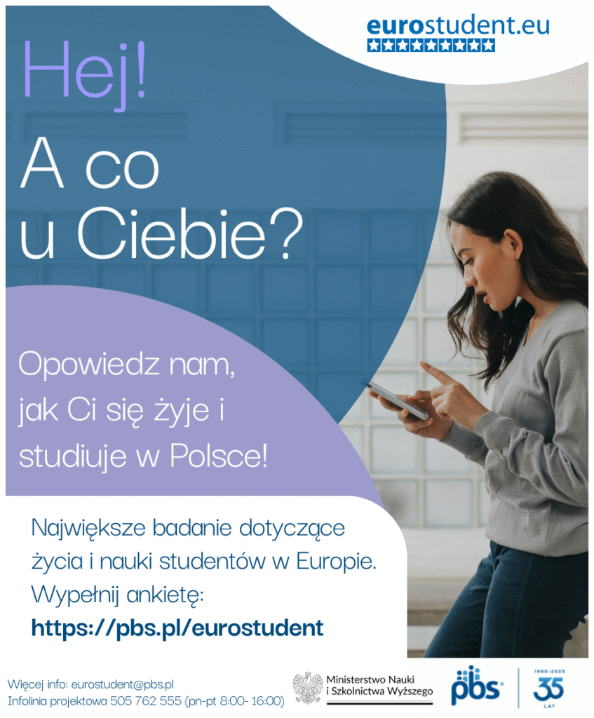 Za realizację badania w Polsce odpowiada niezależna agencja badawcza PBS Sp. z o.o. na zlecenie Ministerstwa Nauki i Szkolnictwa Wyższego. Kontakt: eurostudent@pbs.pl