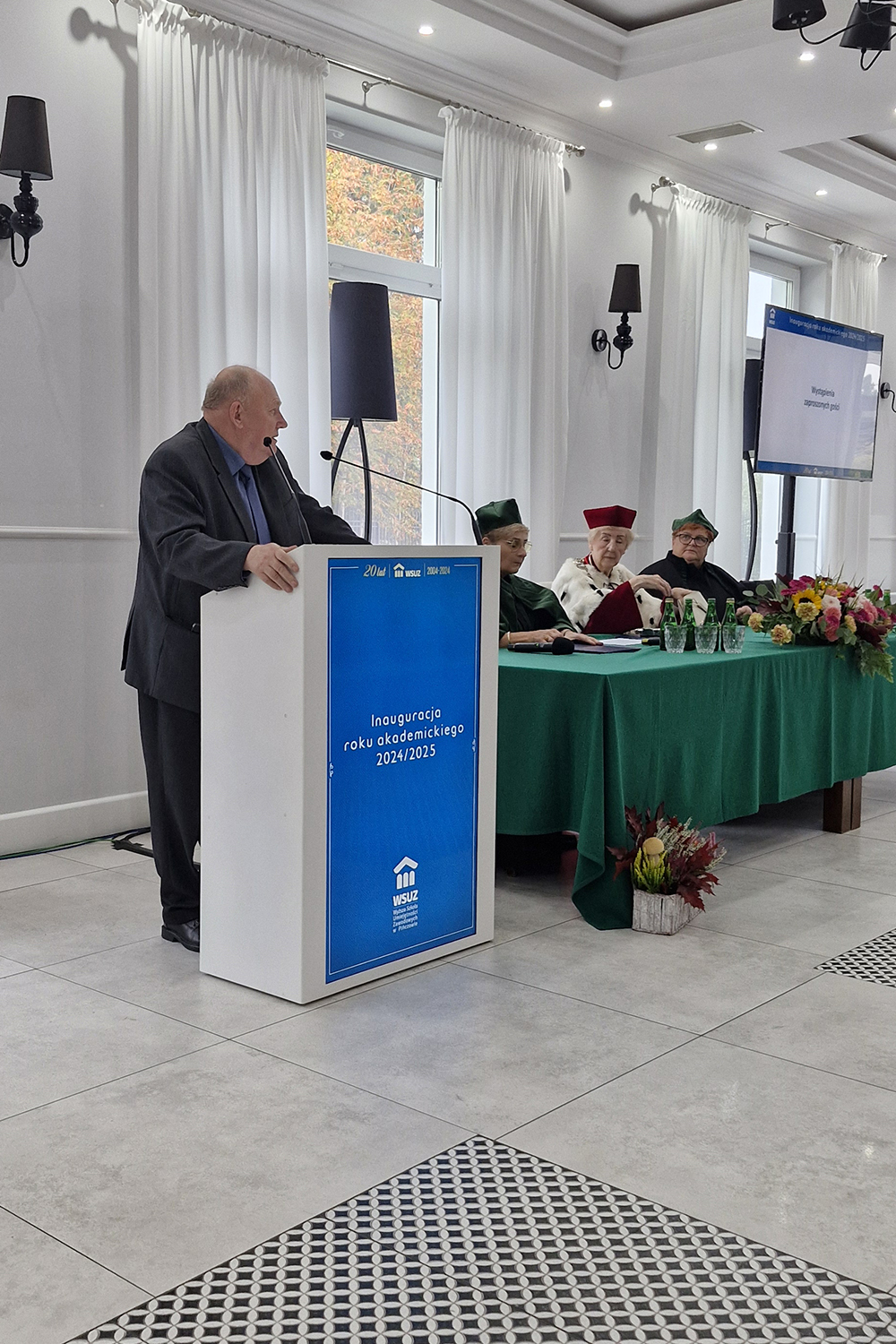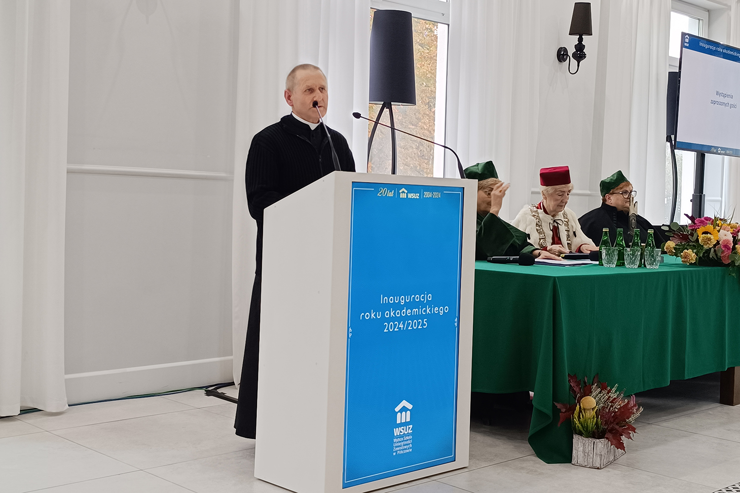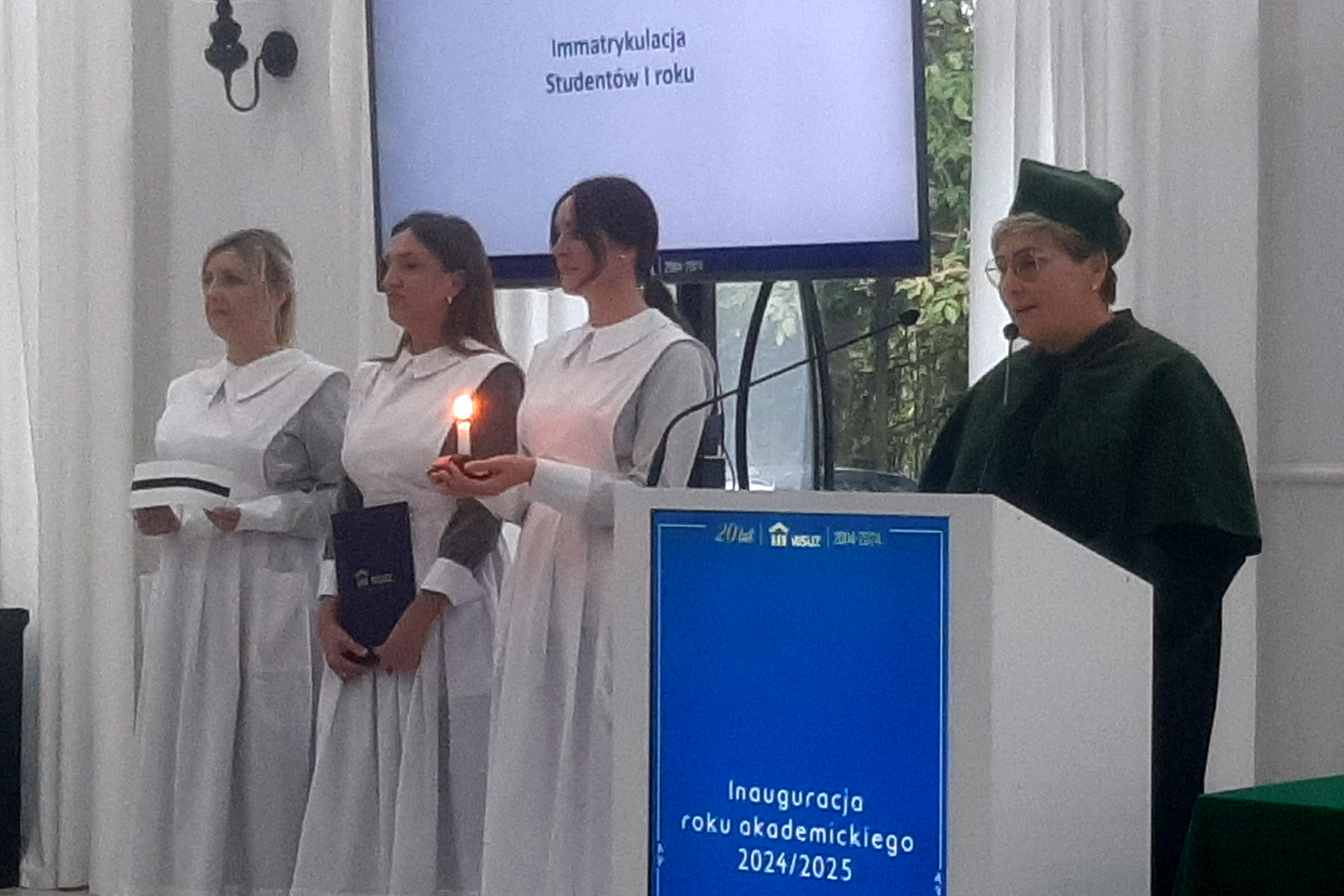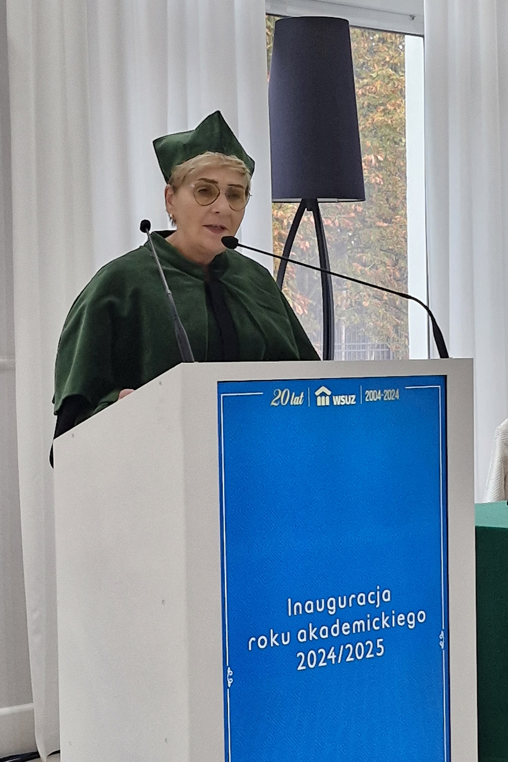 W dniu 4 października 2024 r. odbyła się uroczysta inauguracja Roku Akademickiego 2024/2025. Uroczystość została otwarta przez Panią Rektor, J.M. prof. dr hab. n. med. Teresę Woźniakowską-Gęsicką. Podczas swojego przemówienia Pani Rektor powitała gości, nauczycieli oraz studentów, oraz zwróciła uwagę na znaczenie tej inauguracji w kontekście jubileuszu 20-lecia funkcjonowania WSUZ. Z okazji jubileuszu, Pani Rektor podziękowała nauczycielom akademickim, opiekunom zajęć praktycznych i praktyk zawodowych, personelowi zakładów opieki zdrowotnej oraz władzom miasta Pińczów i starostwu powiatowemu za owocną i wieloletnią współpracę.