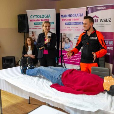 Uczestnicy wydarzenia mieli również okazję do praktycznego działania. Pokaz ratownictwa pierwszej pomocy był nie tylko edukacyjny, ale także mógł być życiodajny w sytuacjach awaryjnych, przynosząc wiedzę, która może uratować życie.