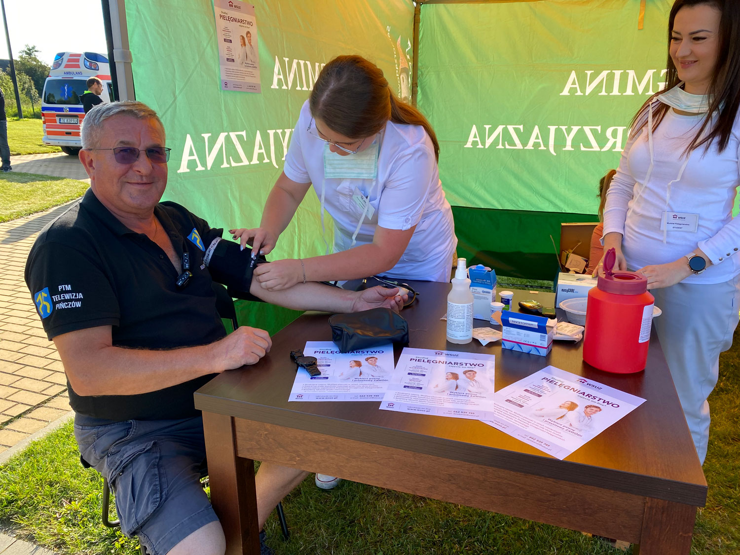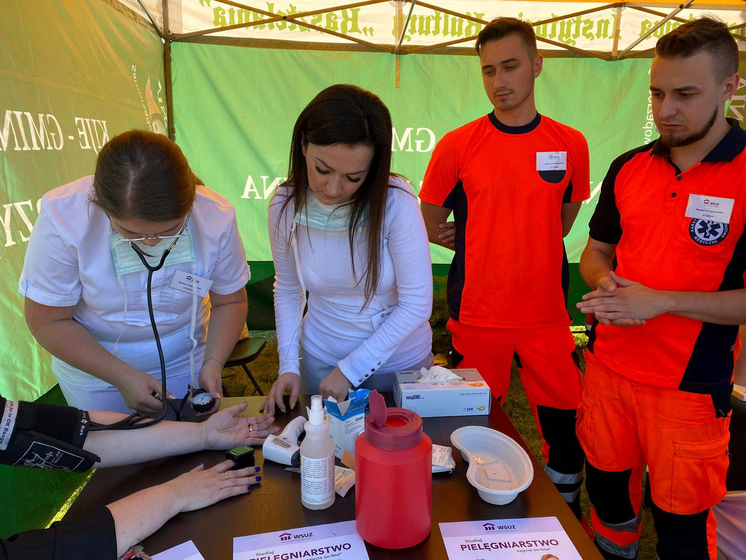 Pod czujnym okiem Prodziekan Barbary Korczak studenci zorganizowali punkt pomiarów parametrów życiowych, badania poziomu glukozy i saturacji oraz mierzenie ciśnienia krwi i temperatury. Studenci którzy są już ratownikami medycznymi prezentowali pokaz pierwszej pomocy oraz uczyli sposobów samobadania piersi u kobiet.